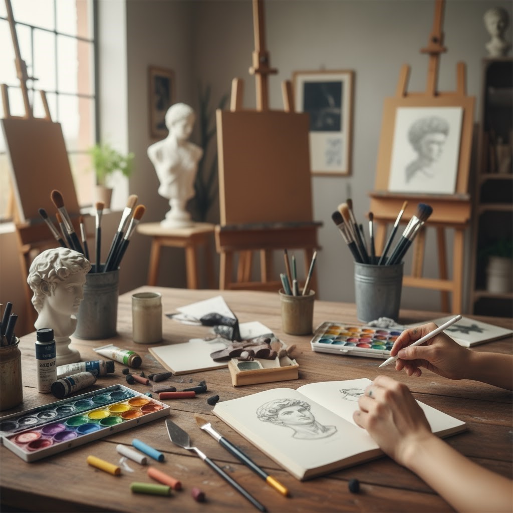 Disponemos de un amplio catálogo de pinceles, brochas y herramientas para Bellas Artes, así como lienzos, papeles técnicos, blocs de dibujo y otros soportes artísticos, adecuados para todo tipo de técnicas y estilos. Trabajamos con marcas de referencia en material artístico, garantizando productos fiables tanto para uso profesional como formativo.